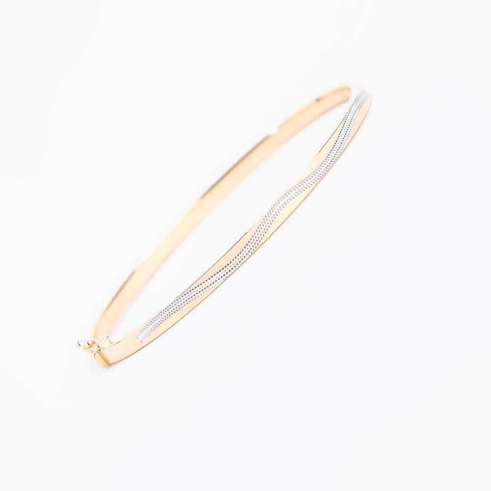 سوار فاخر بتصميم أنيق يجمع بين الذوق الكلاسيكي واللمسات العصرية. مصنوع من ذهب عيار 18 مع تفاصيل انسيابية تُشبه أمواج الشفق، يعكس البساطة والجاذبية. مثالي لإطلالة يومية راقية أو لمناسباتك المميزة، ليضيف لمسة من التألق والجمال.