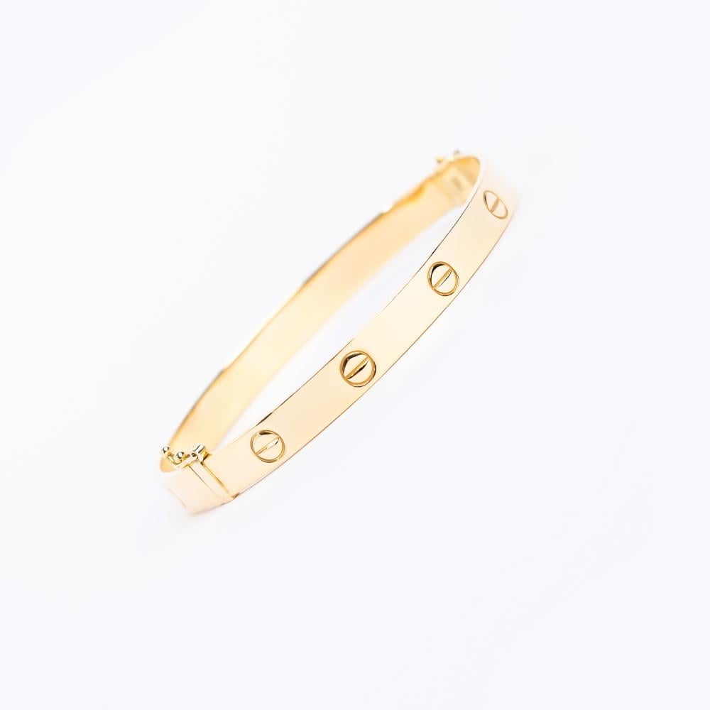 سوار فاخر من تصميم كارتيه، مصنوع من الذهب عيار 18. يتميز بتصميمه الأيقوني الذي يجمع بين الأناقة والبساطة، مع تفاصيل دقيقة تعكس الحرفية العالية والفخامة. تصميم مثالي يعبر عن الذوق الراقي ويليق بالإطلالات اليومية والمناسبات الخاصة. قطعة خالدة تضيف لمسة من الفخامة إلى مجموعتك.