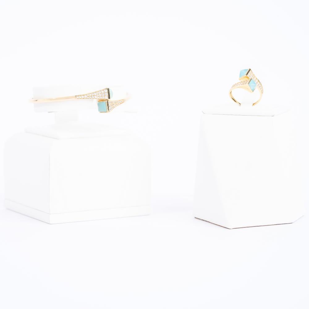 اسورة مع خاتم ذهب ايطالي تصميم " مارلي " مرصع بالزركون السويسري عيار 18 مكون من قطعتين ،،، "الأساور الذهبية... عنوان الفخامة على معصمك."