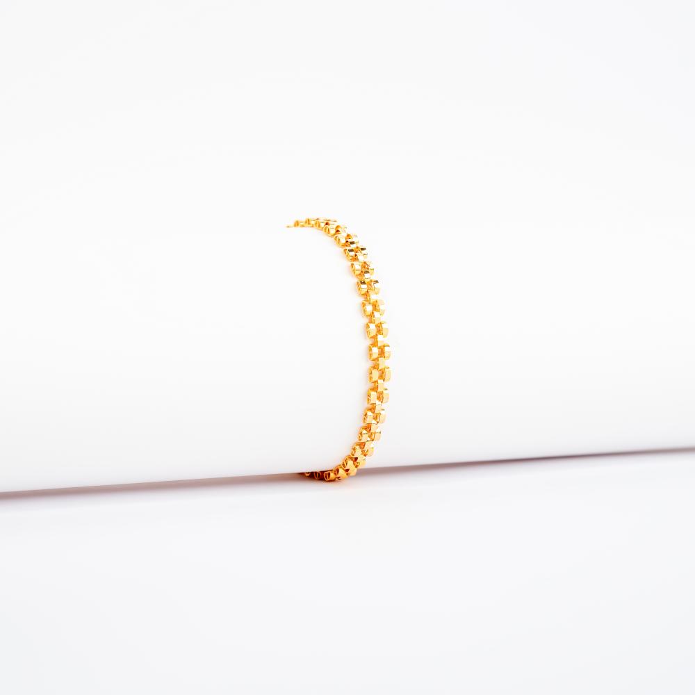 انسيال ذهبي أنيقة بتصميم مربعات صغيرة متشابكة، مصنوعة بدقة من الذهب عيار 21. تتميز بلمسة عصرية تعكس التميز والرقي، مما يجعلها خياراً مثالياً للإطلالات اليومية والمناسبات الخاصة. تصميم يوازن بين الجمال والبساطة لإبراز شخصيتك.