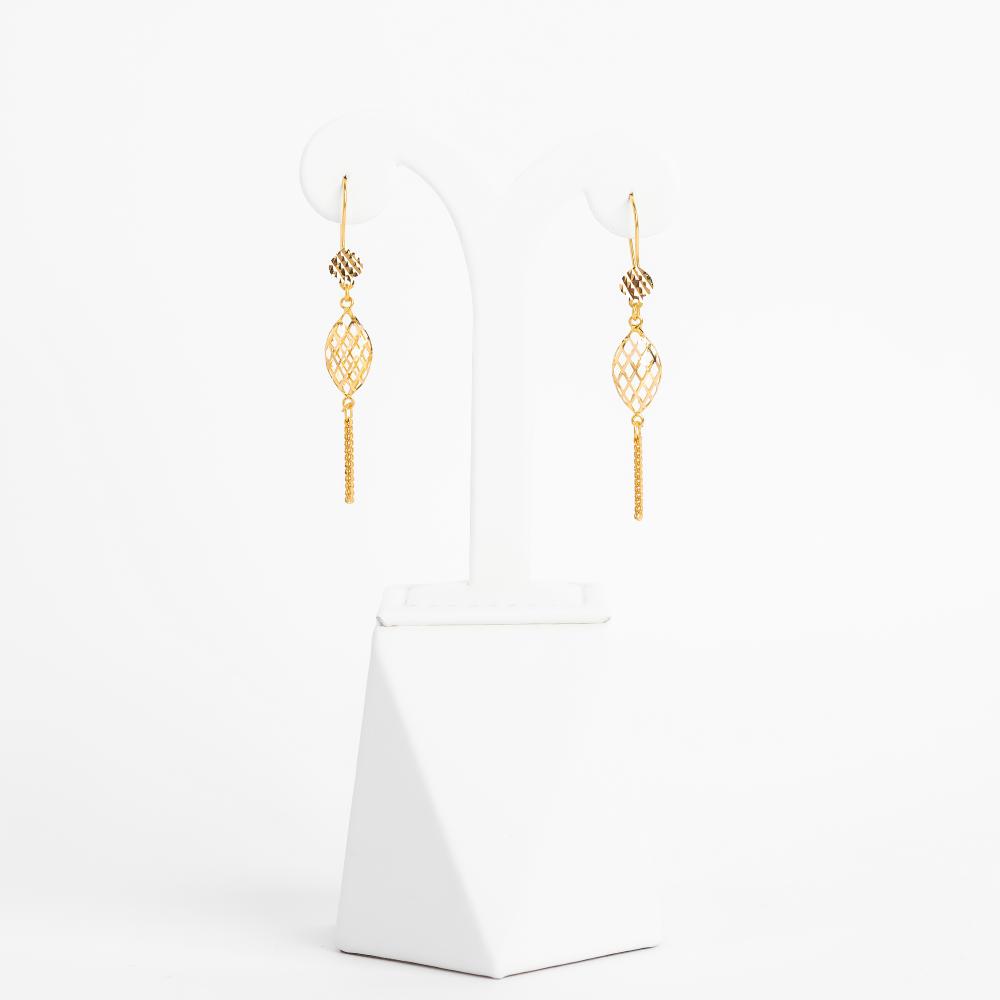حلق انجر مصنوع من الذهب الأصفر عيار 21، يتميز بتصميم يعكس الإبداع والبساطة. تصميمه الأنيق والخفيف يجعله مثاليًا للإطلالات اليومية والمناسبات الخاصة، مما يضيف لمسة من الرقي والجاذبية لأي مظهر. قطعة فريدة تعكس ذوقًا عصريًا وراقيًا.