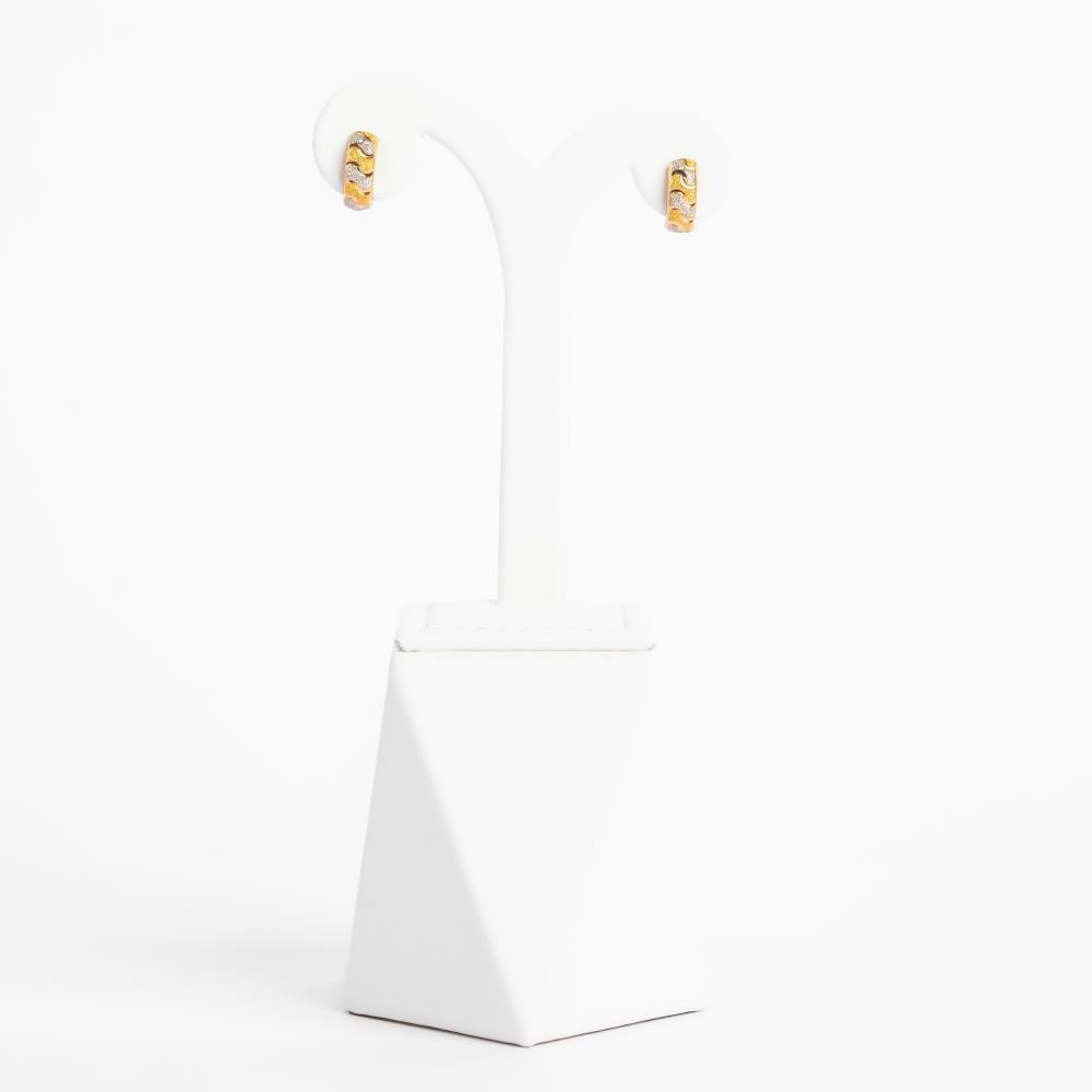 حلق صغير وأنيق مصنوع من الذهب عيار 21، يتميز بتصميم بسيط مع نقوش زخرفية جميلة تضفي لمسة من الأناقة والتميز، مناسب للإطلالات اليومية أو المناسبات البسيطة.