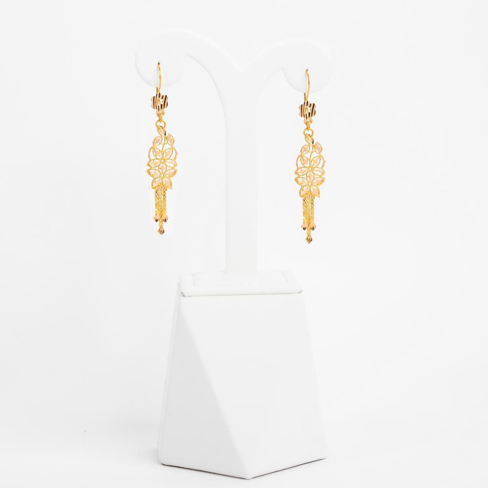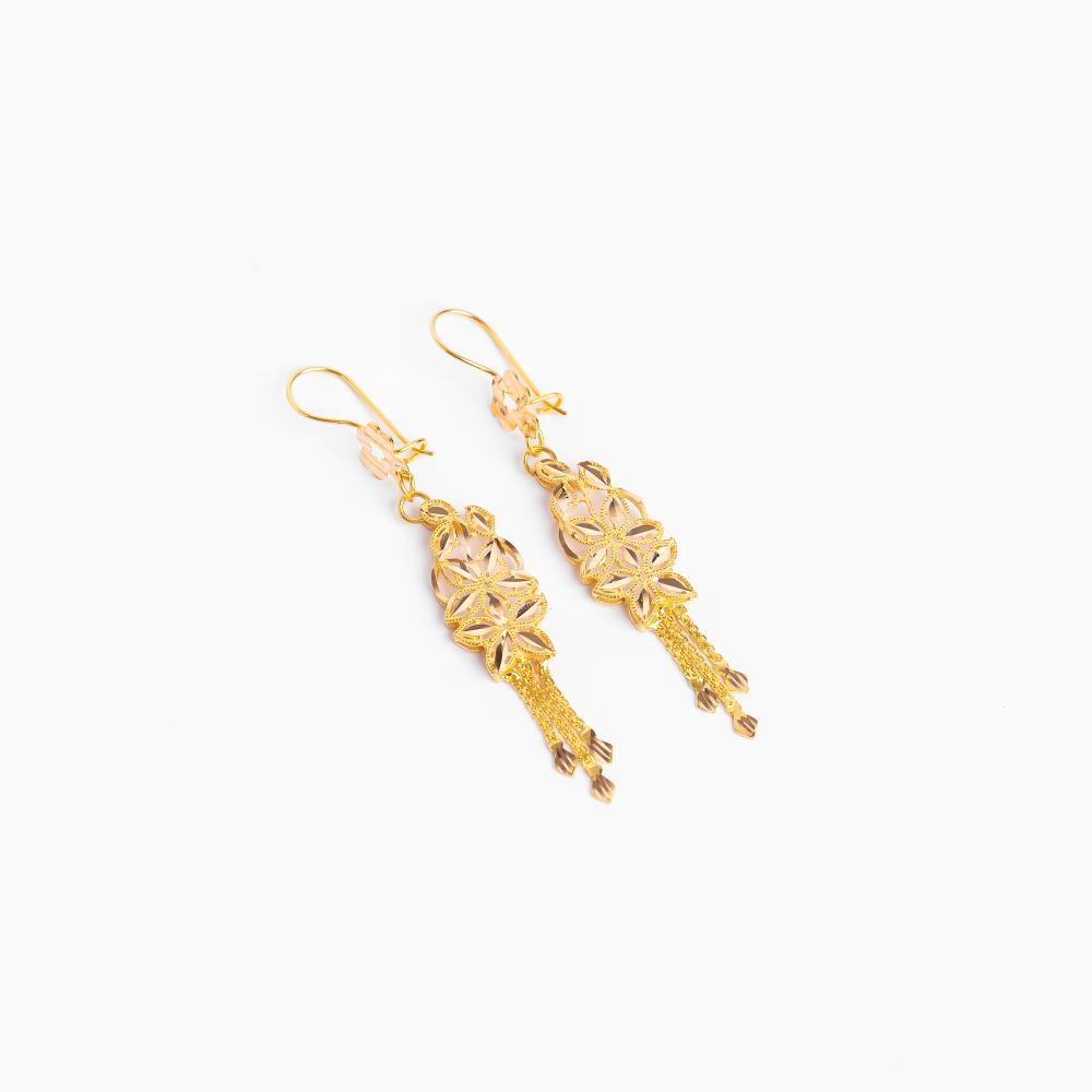 حلق فلورز متدلي مصنوع من الذهب الأصفر عيار 21، يتميز بسلسلة متشابكة بتصميم ملتف يعكس الإبداع والبساطة. تصميمه الأنيق والخفيف يجعله مثاليًا للإطلالات اليومية والمناسبات الخاصة، مما يضيف لمسة من الرقي والجاذبية لأي مظهر. قطعة فريدة تعكس ذوقًا عصريًا وراقيًا.
