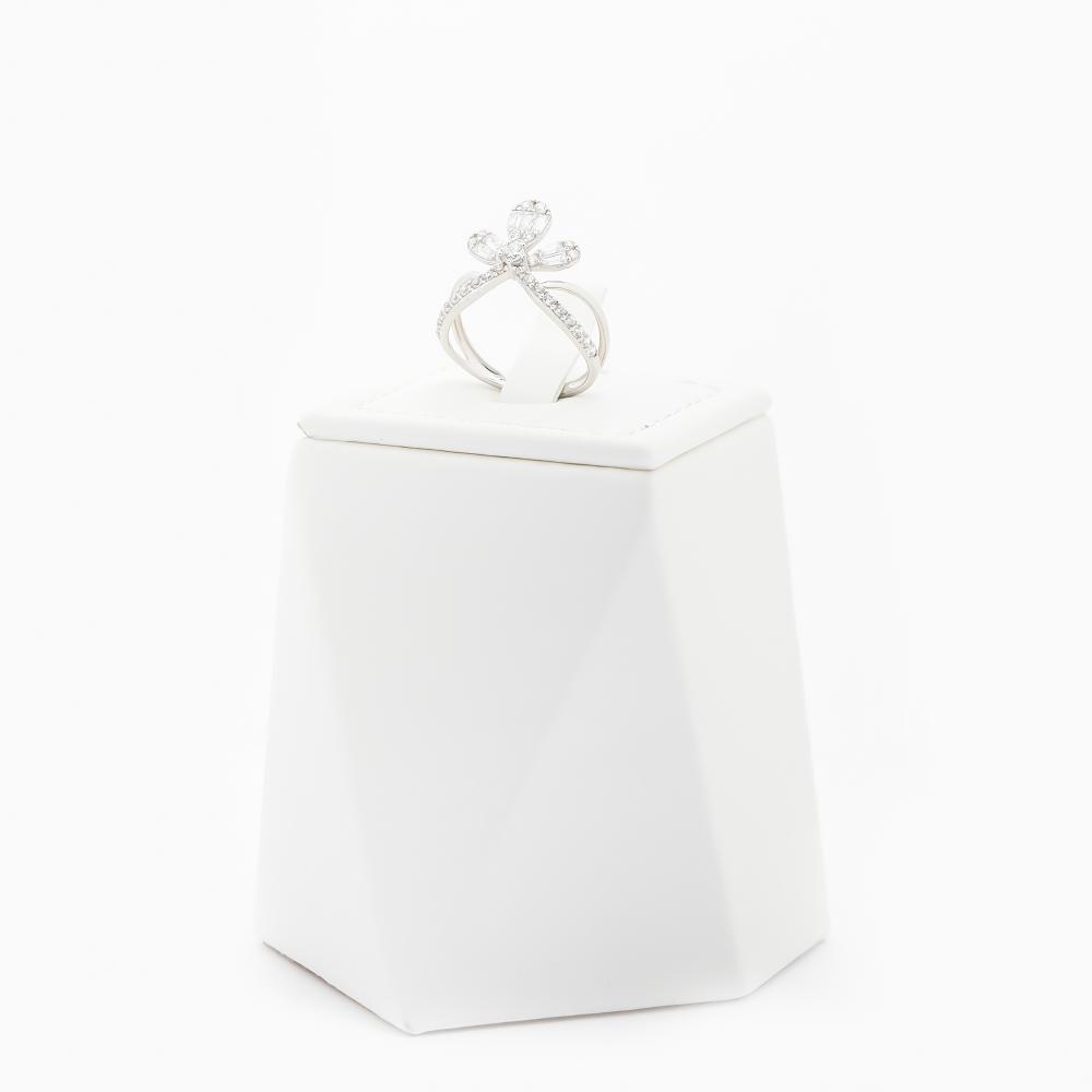 خاتم أنيق مصنوع من الذهب الابيض بتصميم مستوحى من زهرة متفتحة، مرصع بأحجار براقة تضفي لمسة من الجمال والتألق. تصميمه الراقي والبسيط يجعله مناسبًا لجميع المناسبات والإطلالات اليومية.