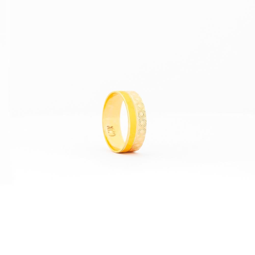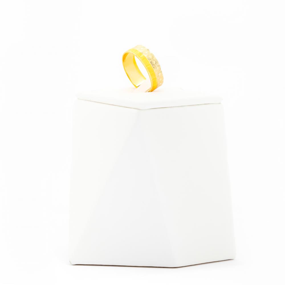 خاتم فاخر مصنوع من الذهب عيار 21، يتميز بتصميم يجمع بين البساطة والفخامة مع نقوش دقيقة على سطحه تضفي عليه طابعًا ملكيًا. تصميمه الراقي يجعله قطعة مثالية لكل من يبحث عن الأناقة والتميز في الإطلالات اليومية أو المناسبات الخاصة.”