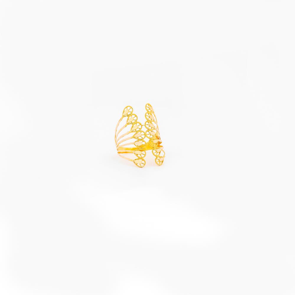 “خاتم الفراشة الملكية الذهبي عيار 21، بتصميم أنيق مستوحى من جمال الفراشات. يتميز بزخارف دقيقة وأجنحة مفتوحة تمنح مظهراً فريداً وجذاباً. مثالي لإضافة لمسة من الفخامة إلى إطلالتك اليومية أو في المناسبات الخاصة.”