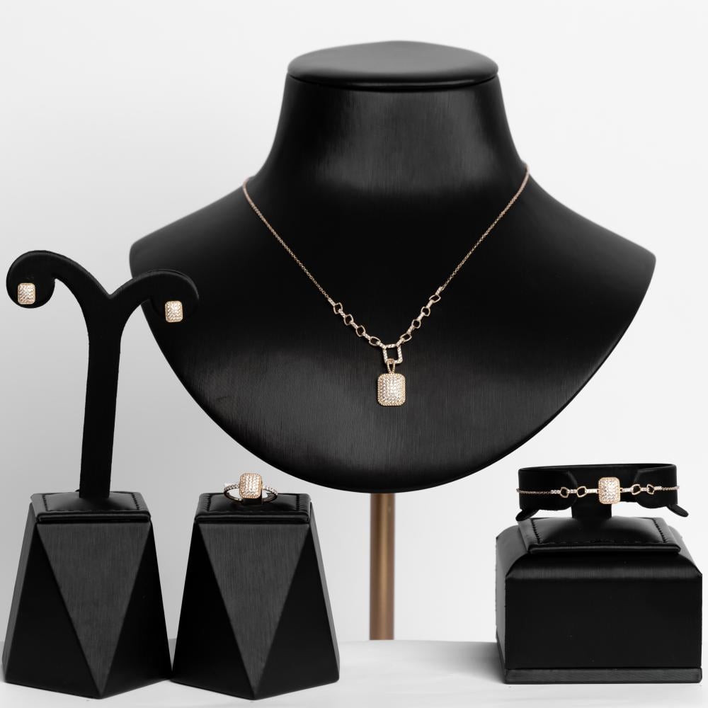 “طقم أوريل يعكس الفخامة والأناقة بتصميمه الفاخر المصنوع من ذهب عيار 18. اسم أوريل ذو أصل لاتيني ويعني “الذهب” أو “اللامع”، مما يضفي على الطقم لمسة من التميز والجمال الفاخر.”