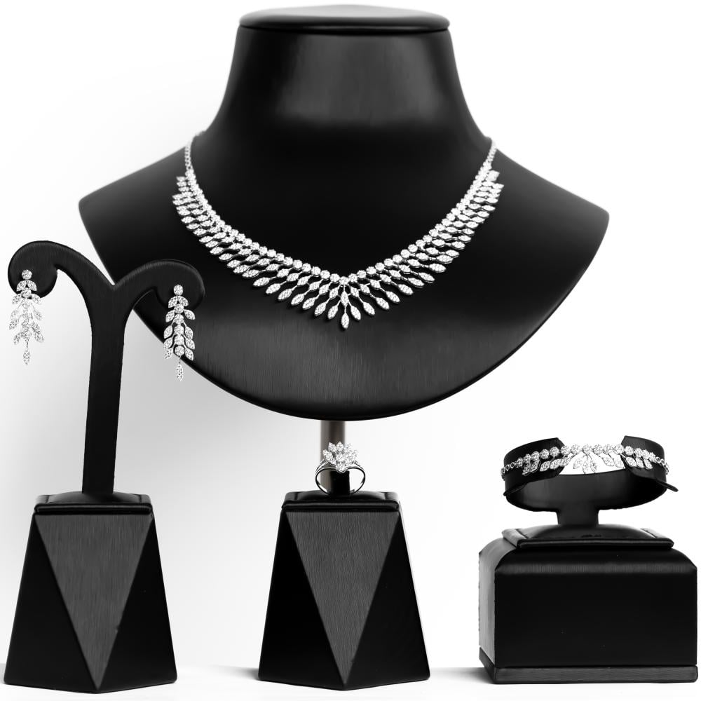 - الطقم يتكون من: قلادة/ اسوارة \ أقراط \ خاتم.