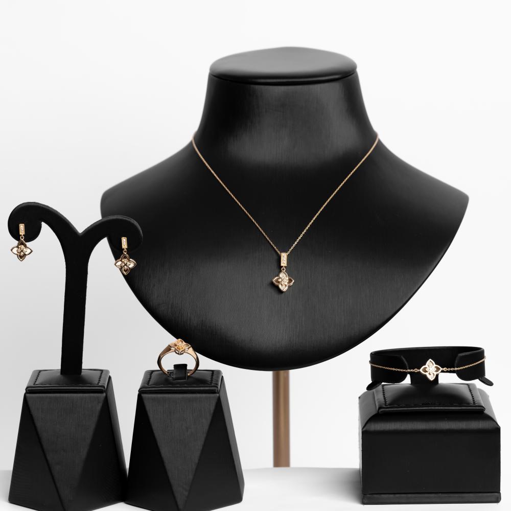 طقم فان كليف هو رمز للأناقة الفاخرة والفخامة الاستثنائية. يتميز بتصميمه المبدع الذي يعكس التميز والجمال، مع تفاصيل دقيقة وأحجار براقة تتناغم مع الذهب عيار 18. يجسد الطقم التناغم بين البساطة والفخامة في تصاميمه المبدعة، مما يجعله الخيار المثالي لإطلالة ساحرة وأنيقة في جميع المناسبات.”
