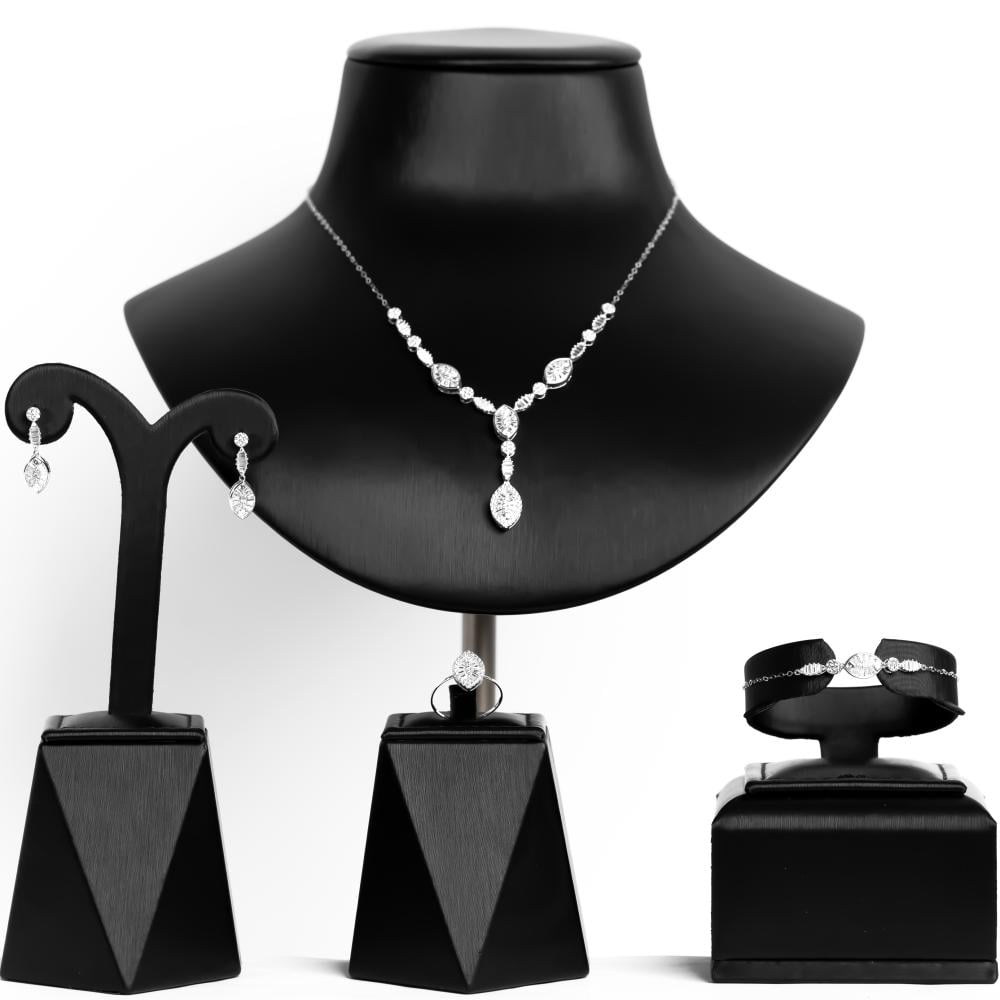 - الطقم يتكون من: قلادة/ اسوارة \ أقراط \ خاتم.