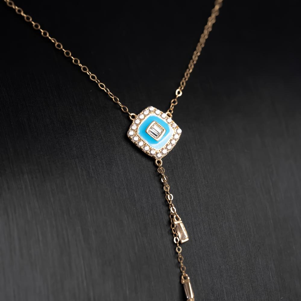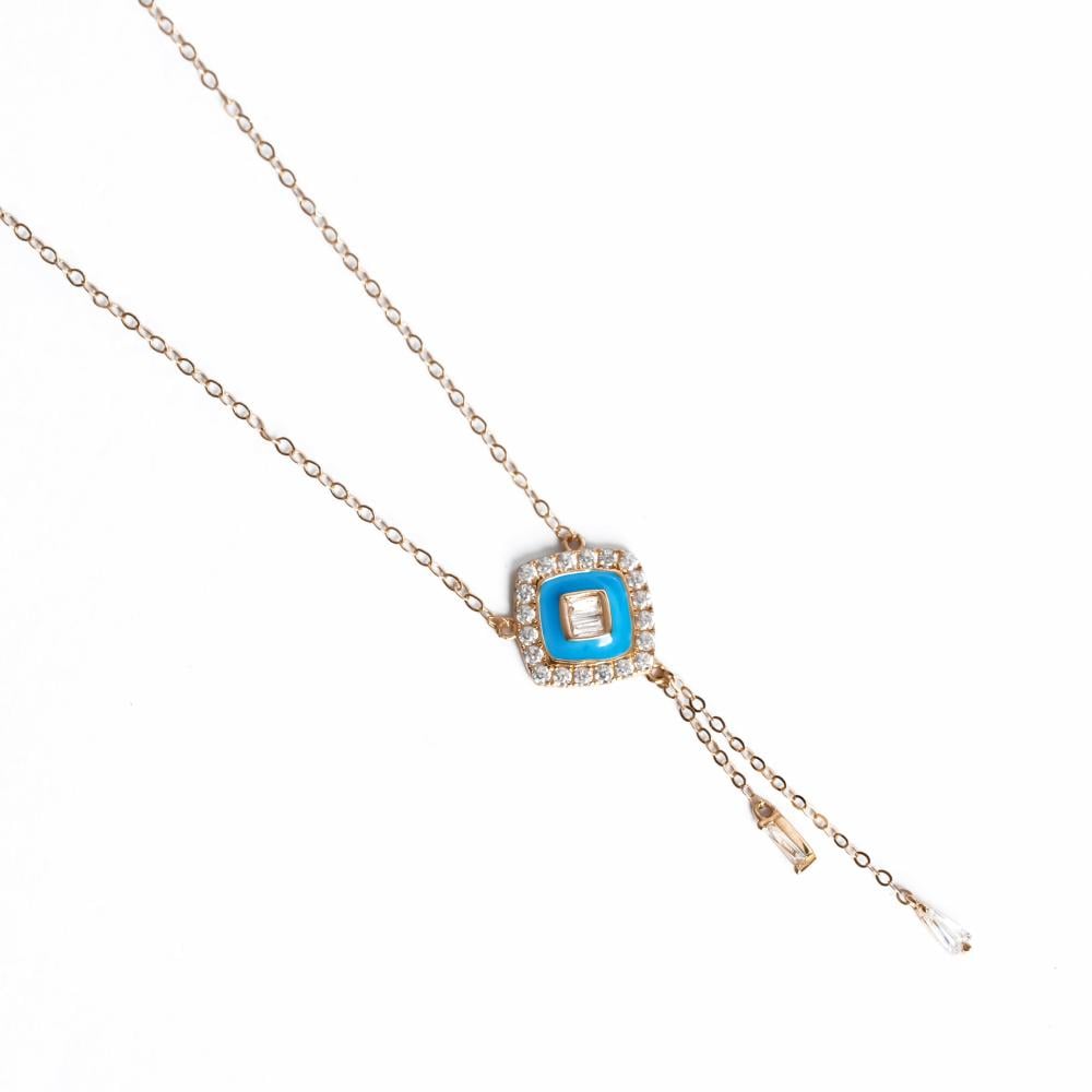 اجعل إطلالتك تتألق مع عقد ذهب رخيص مصنوع من عيار 18 الذي يعكس جمال الفخامة والجاذبية تم تزيينه بحجر الفيروز الطبيعي ليضفي لمسة من اللون المميز ويعزز جمالك في كل مناسبة مع تصميمه العصري والمبتكر، يعد الخيار المثالي لكل سيدة تبحث عن التفرد والتألق.